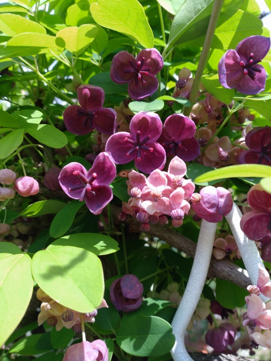 ツル性のお花でフェンスに這わせてありとても綺麗でした。お花の名前は・・・忘れてしまいました・・・ごめんなさいです。
