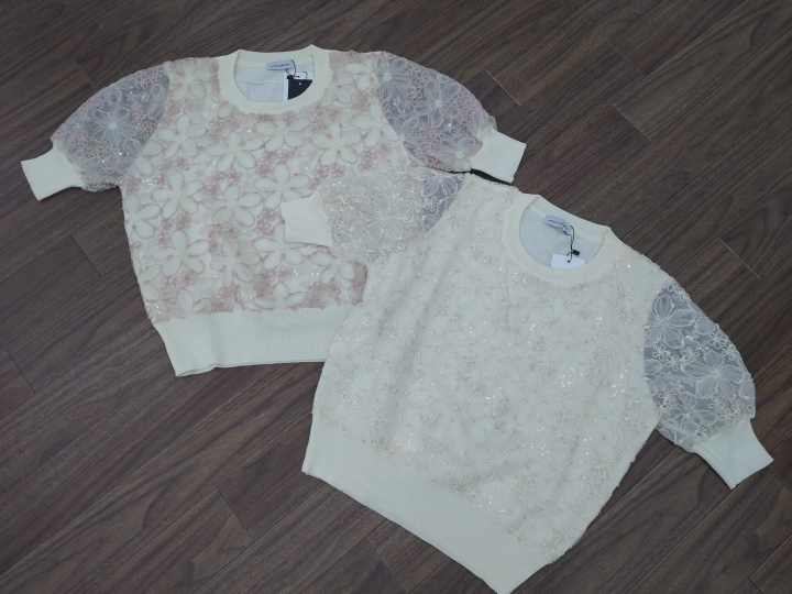 日本人の肌(顔色)をほわ~ぅと明るくしてくれる様なフラワーデザインです!心も穏やかに優しくなれそうな・・・そんな可愛いデザイン。お袖のシースルーがまた可愛い!! でも甘すぎず派手すぎず! お出かけにピッタリのサマーニットです!!! ホワイト・ピンク 着丈54 身幅49 ¥2400+税 ¥2640 SOLD OUT 再入荷待ち